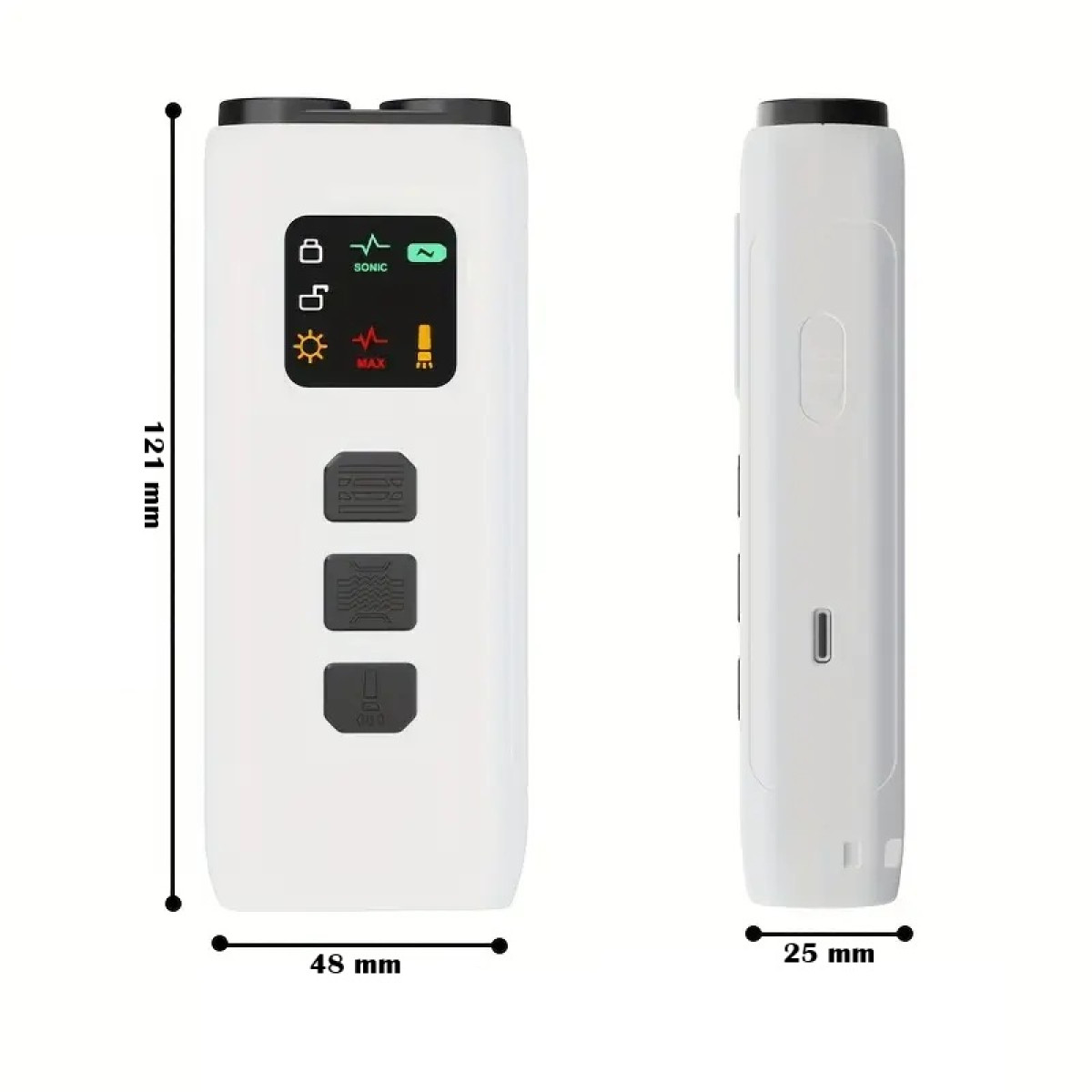 - dydis 121mm x 48mm x 25mm;