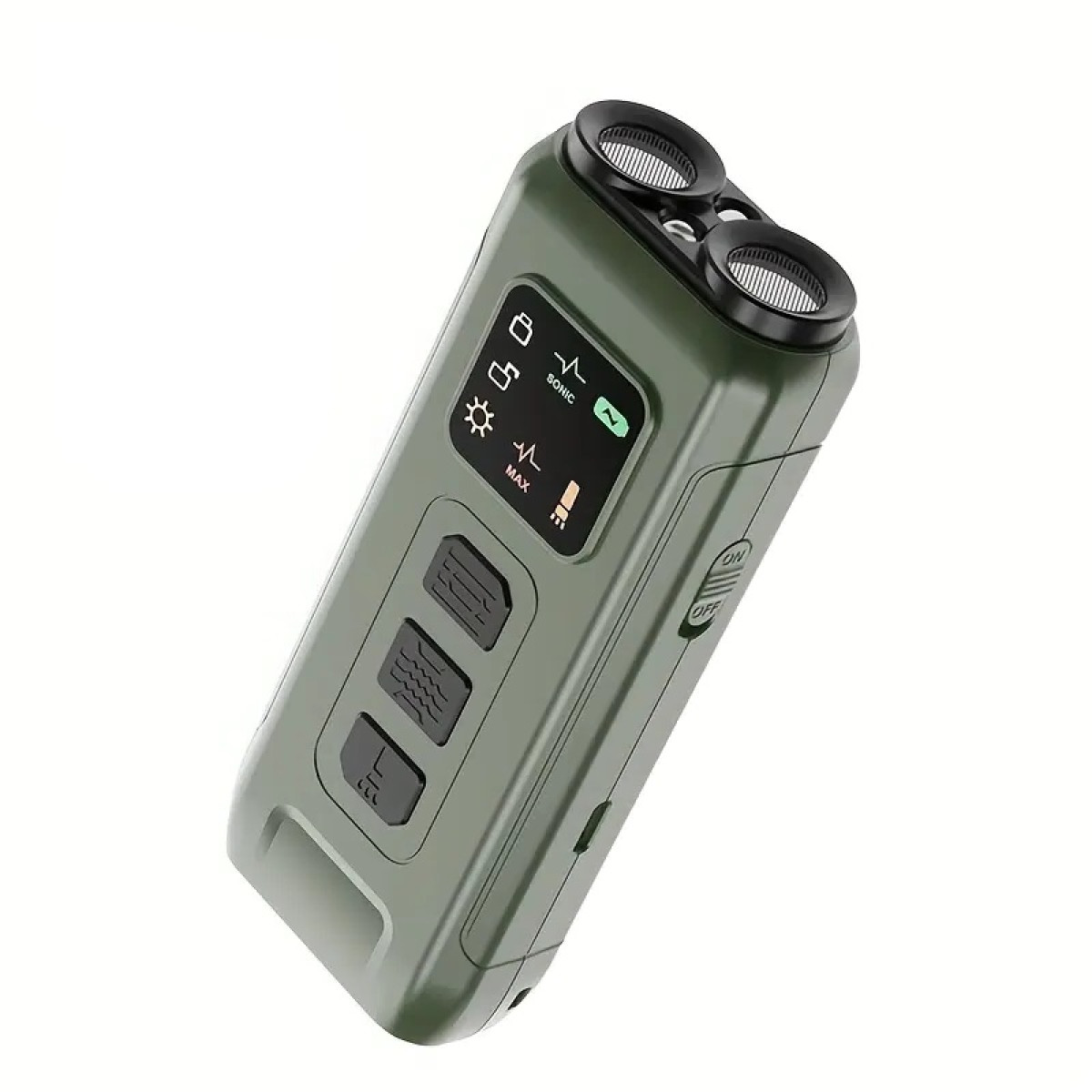 Profesionalus šunų dresavimo įrenginys su pažangiausia ultragarso technologija skleidžia aukšto dažnio garso bangas, kurios atkreipia šunų dėmesį, kai jie per daug loja, yra saugūs ir efektyvūs šunims ir žmonėms... Ultragarsas stipriai veikia šuns klausą, sustiprinant poveikį Led blyksniu. Ryški LED šviesa mirksėdama leidžia šuniui suprasti, kad prietaisas naudojamas prieš jį. Jūs priversite pasitraukti agresyvų šunį. Efektyviai veikia iki 15 metrų. Ultragarso dažnis yra 20 ~ 35 KHZ.